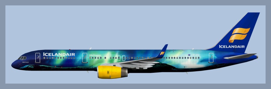 Features special Icelandair repaint for the AIG 757-200. TF-FIU features a special livery from Icelandair highlighting the Northern Lights, also known as Aurora Borealis and also promoting their Iceland stopover program.