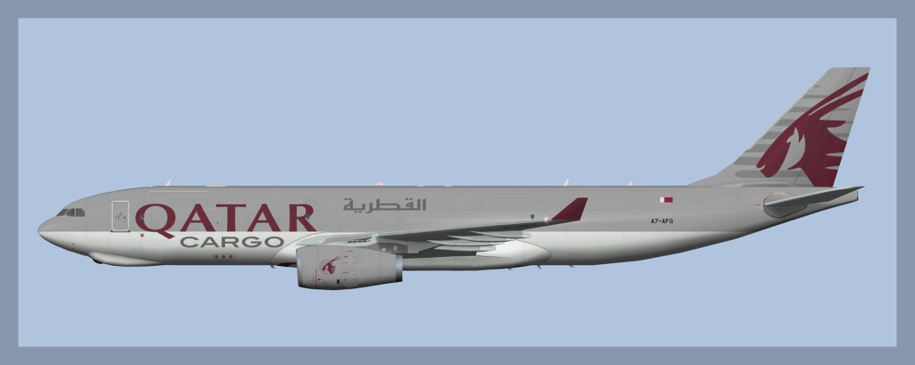 Features 2 Qatar Airways Cargo variants for the FSP A330-200F. The airline operates A330-200F aircraft, with one single aircraft A7-AFJ being the 242t version of the A330.