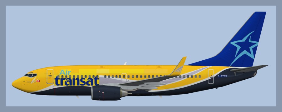Features 4 Air Transat variants for the FAIB 737-700. This fleet package covers all 4 airframes used by Air Transat for the Winter 2017/18 season. The aircraft are leased from ASL Airlines France and 3 of them wear the distinctive yellow livery of Europe Airpost