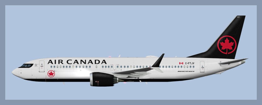 Paints for the FSP Boeing 737-MAX8 model in Air Canada livery. Includes Wifi and non-wifi dome variants.