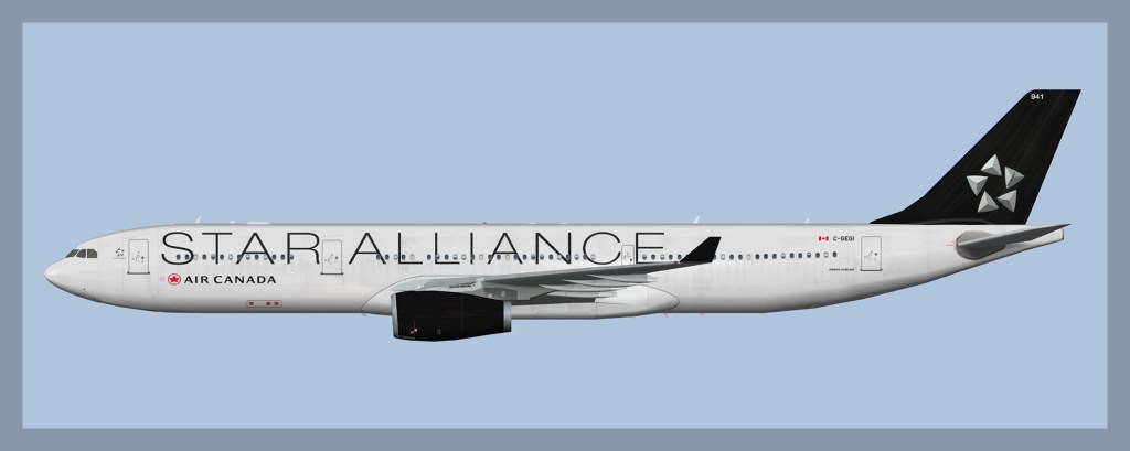 Paints for the FSP Airbus A330-300 model in Air Canada livery. Air Canada has taken delivery of 4 ex-Singapore Airlines and ex-TAP A330-300s. These aircraft have a different configuration to the regular Air Canada A330 fleet. These aircraft are fitted in a 30PY 255Y config instead of the normal 27J 21PY 244Y.