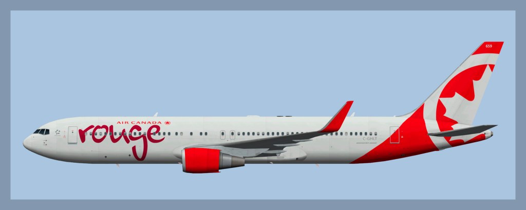 Paints for the FAIB Boeing 767-300 model in Air Canada Rouge livery.
