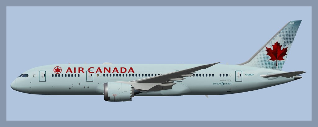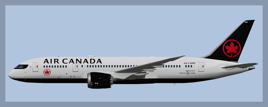 Paints for the UTT Boeing 787-8 model in Air Canada livery. Both the current livery and the older blue livery are included. Note all AC 787-8’s have now been fitted with Wifi Domes.