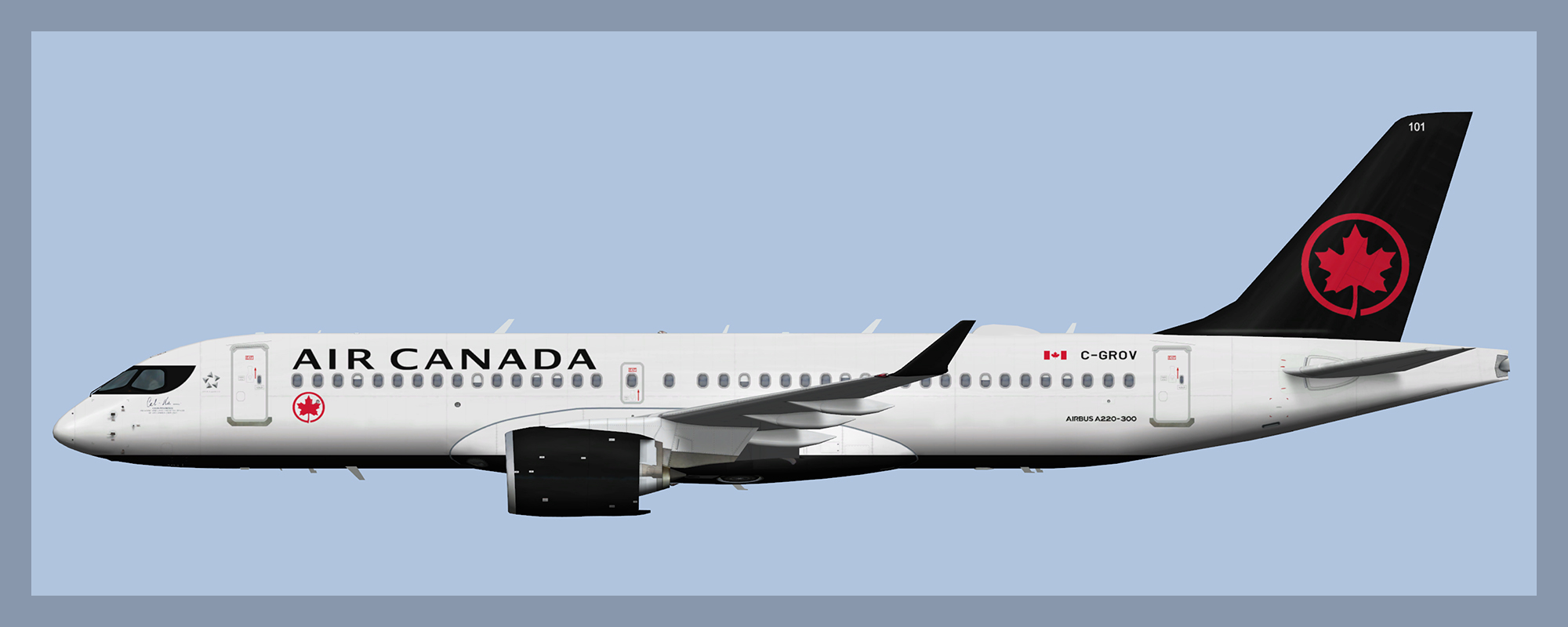 Paints for the FSP Airbus A220-300 model in Air Canada livery. Includes all current variants with the regular livery, Retro livery and C-GROV which has titles on the nose honouring the airline’s former CEO Calin Rovinescu.