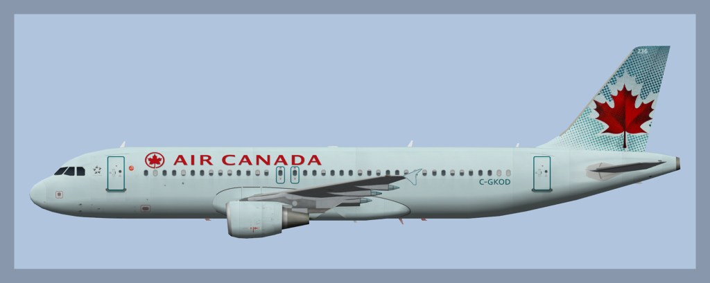 Paints for the FAIB Airbus A320 model in Air Canada livery.