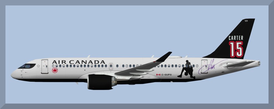 Paint for the SBAI Airbus A220-300 model in Air Canada livery, featuring former Toronto Raptor NBA legend Vince Carter who recently had his #15 jersey retired by the team.