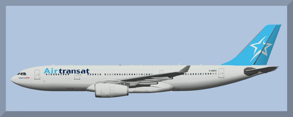 Paint for the AIG Airbus A330-200 model in Air Transat livery. Ex-Aeroflot/Heston Airlines aircraft wearing an interim livery.