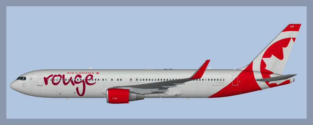 Paints for the FAIB Boeing 767-300 model in Air Canada Rouge livery.