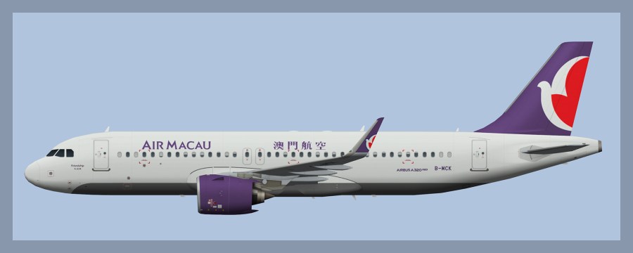 Paints for the FAIB Airbus A321NEO model in Air Macau livery. Includes standard and Macau Welcomes You liveries.