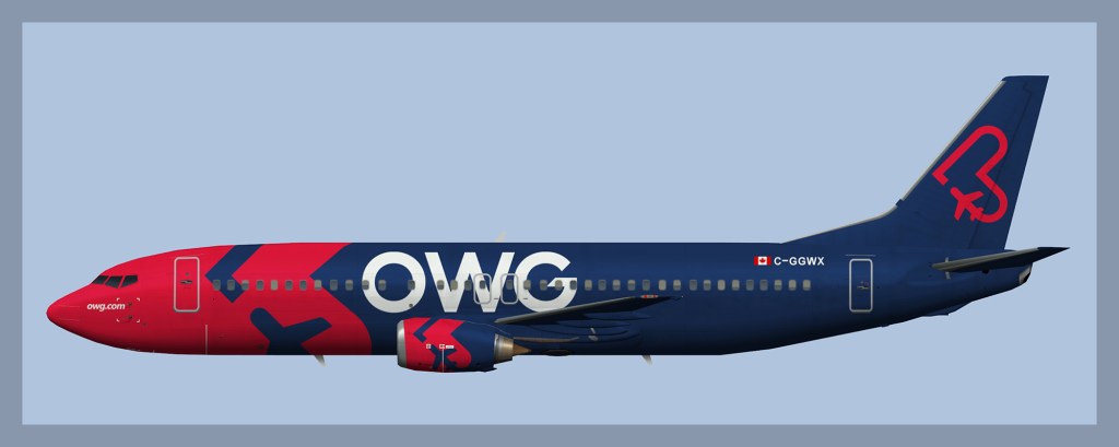 Paints for the FAIB Boeing 737-400 model in OWG liveries. OWG is a new airline based in Montreal operated and run by Nolinor Aviation. It will start operations in December 2020 with 3 737-400s operating from Montreal and Toronto on services to Cuba in association with tour operator Hola Sun.