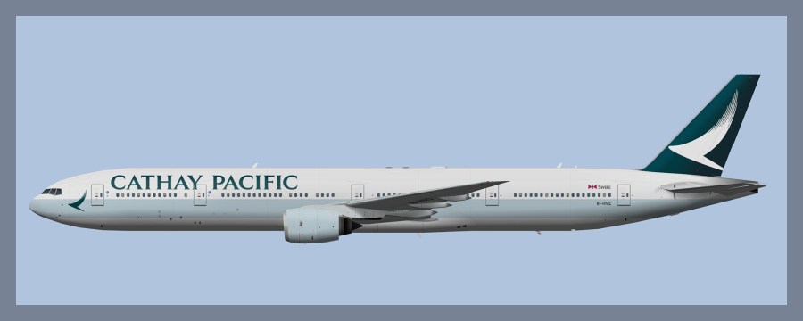 Paint for the TFS Boeing 777-300ER model in Cathay Pacific livery with the airline’s new larger titles.