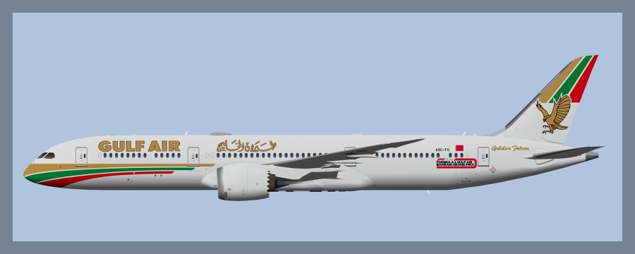 Paints for the AIG Boeing 787-9 model in Gulf Air livery. Features all variants for AIG SU25 flightplans.