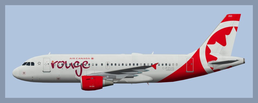 Paints for the FAIB Airbus A319 model in Air Canada Rouge livery.