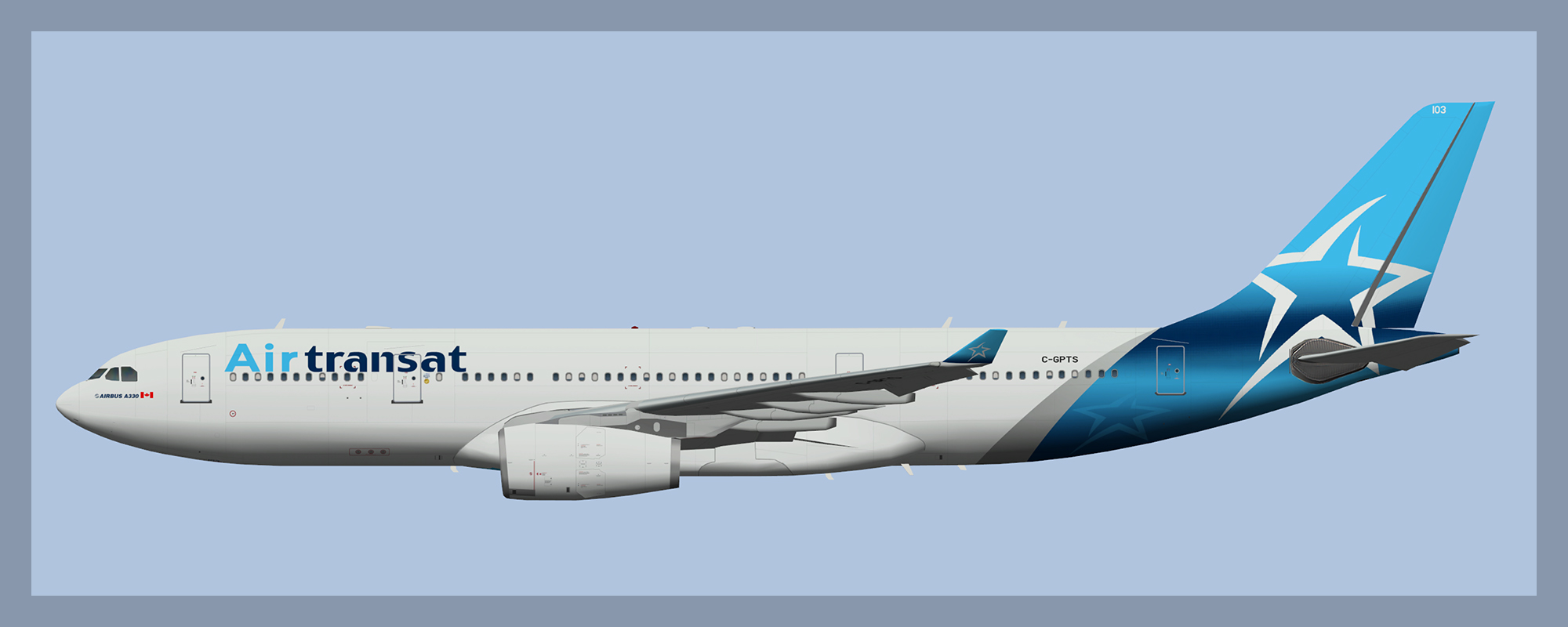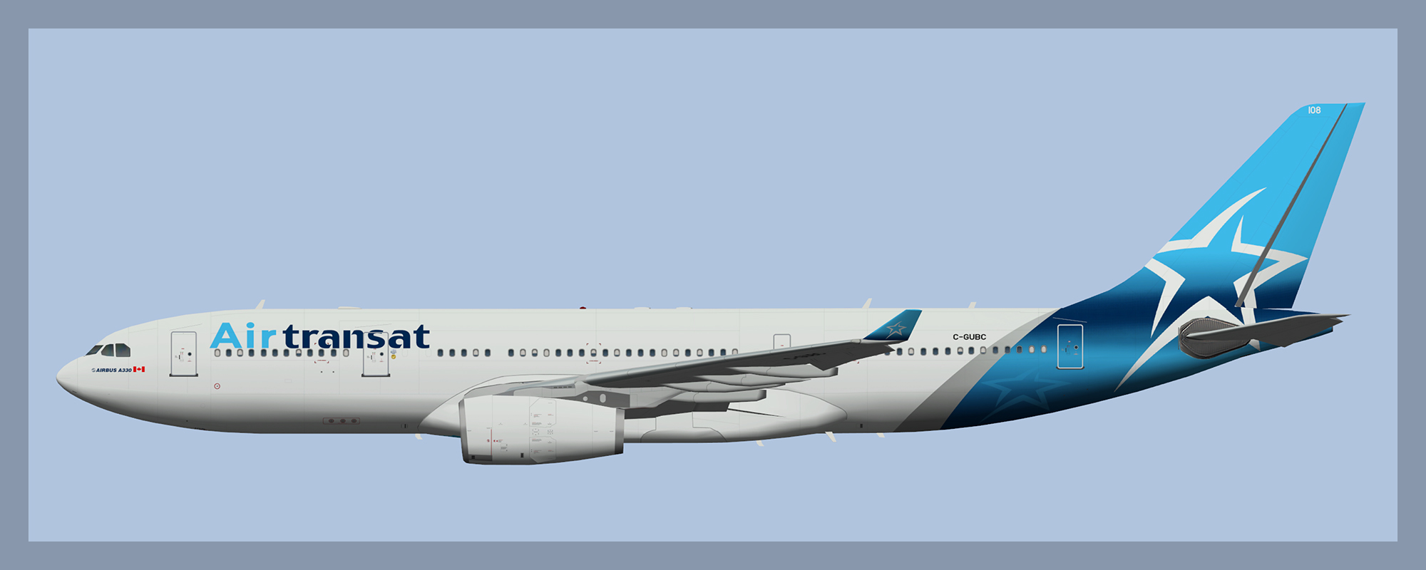 Paint for the AIG Airbus A330-200 model in Air Transat livery. Ex-Aeroflot/Heston Airlines aircraft wearing an interim livery.