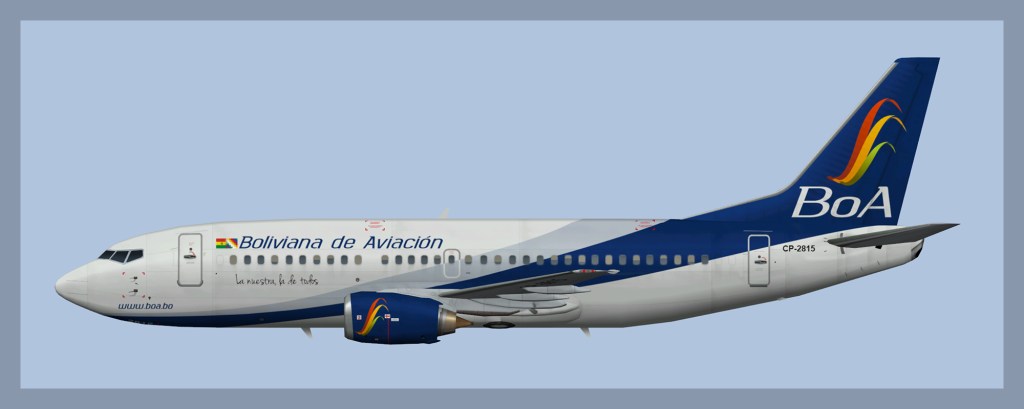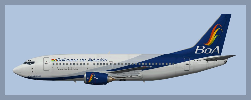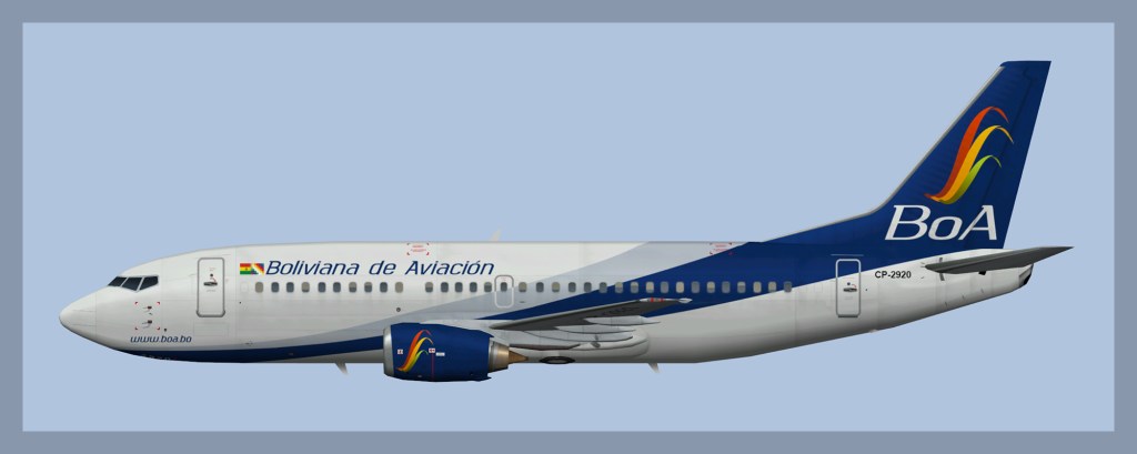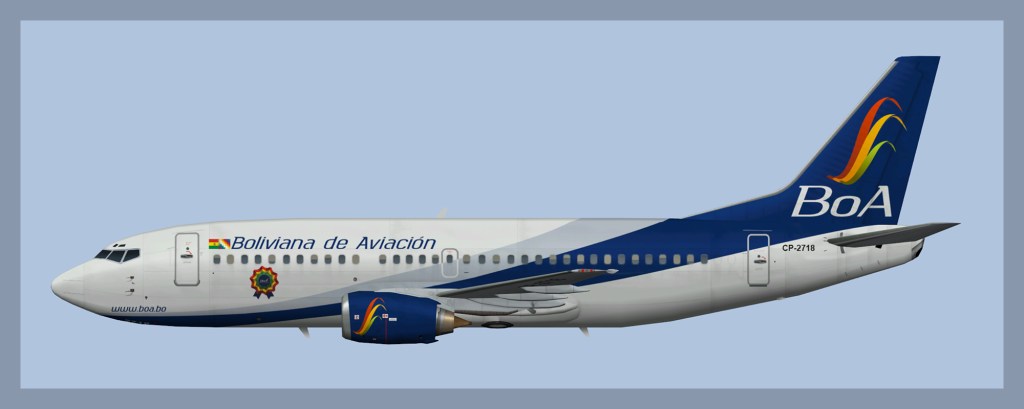 Paint for the FAIB Boeing 737-300 Logolight model featuring all variants of Boliviana de Aviacion’s 737-300s. These paints were made a few years ago and were current at the time of painting.
