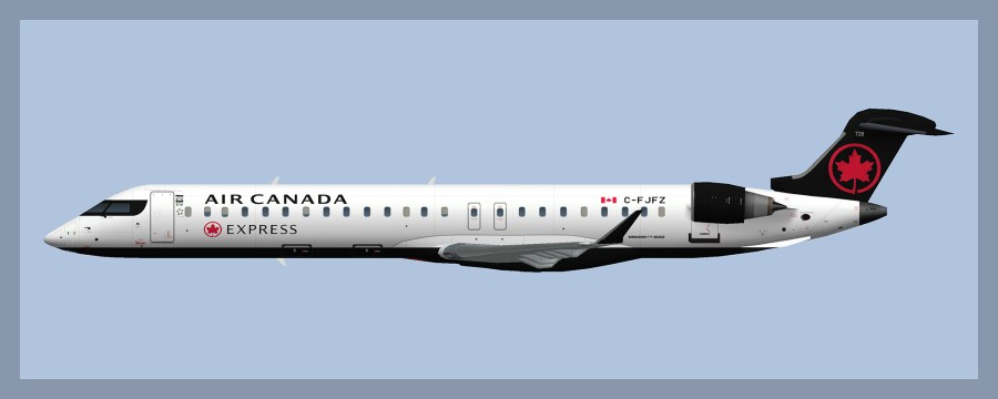 Paints for theRavenAI Bombardier CRJ900 model in Air Canada Express livery.