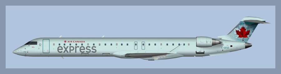 Paints for theRavenAI Bombardier CRJ900 model in Air Canada Express livery.