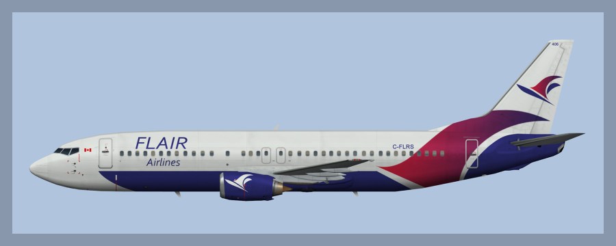 Paints for the FAIB Boeing 737-400 model in all current versions of the Flair Airlines old and new livery