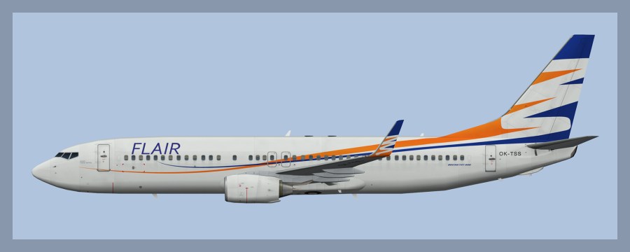 Paints for the FAIB Boeing 737-800 model in Flair Airlines liveries as per January 2019. Flair has leased 3 737-800s from Czech operator Smartwings and they all carry hybrid versions of their livery.