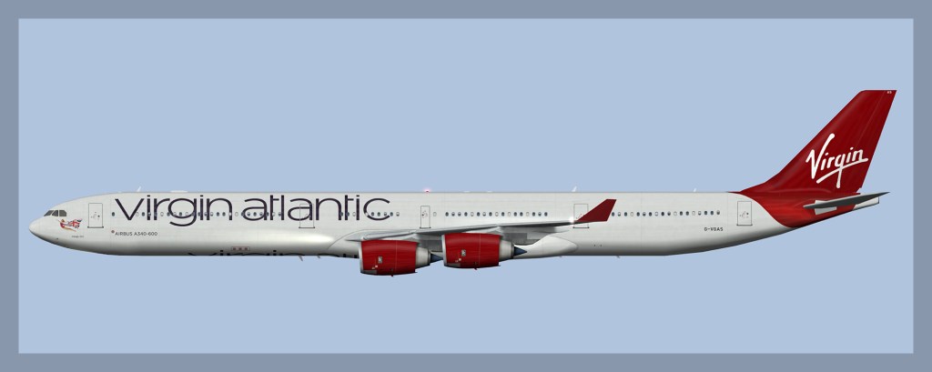 Features 3 Virgin Atlantic repaints for the FSP A340-600. Features the last 3 Virgin liveries. The very old livery with the red and blue tail and darker silver body, the old livery with the red tail and white highlight and modified titles and finally the current livery with the large billboard titles and metallic red tail